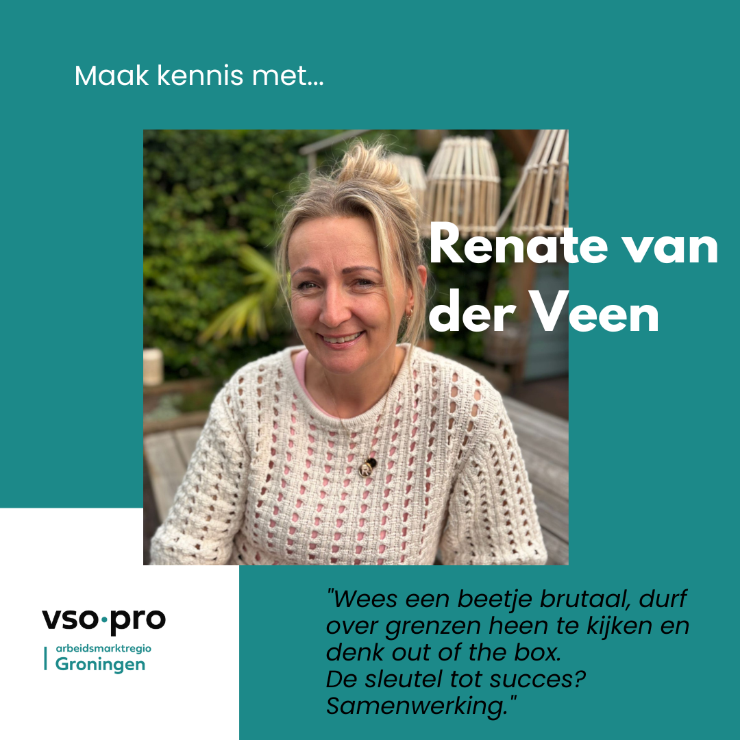 Mijn naam is Renate van der Veen, ik ben 52 jaar en woon in Peize. Samen met mijn partner, twee kinderen en onze Labradoodle geniet ik van het leven in het noorden.